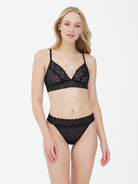 This sheer bralette is perfect for every day. The floral lace trim on the neckline and bottom band add a feminine finish. Pair with one of the Dare panties to complete the look.