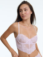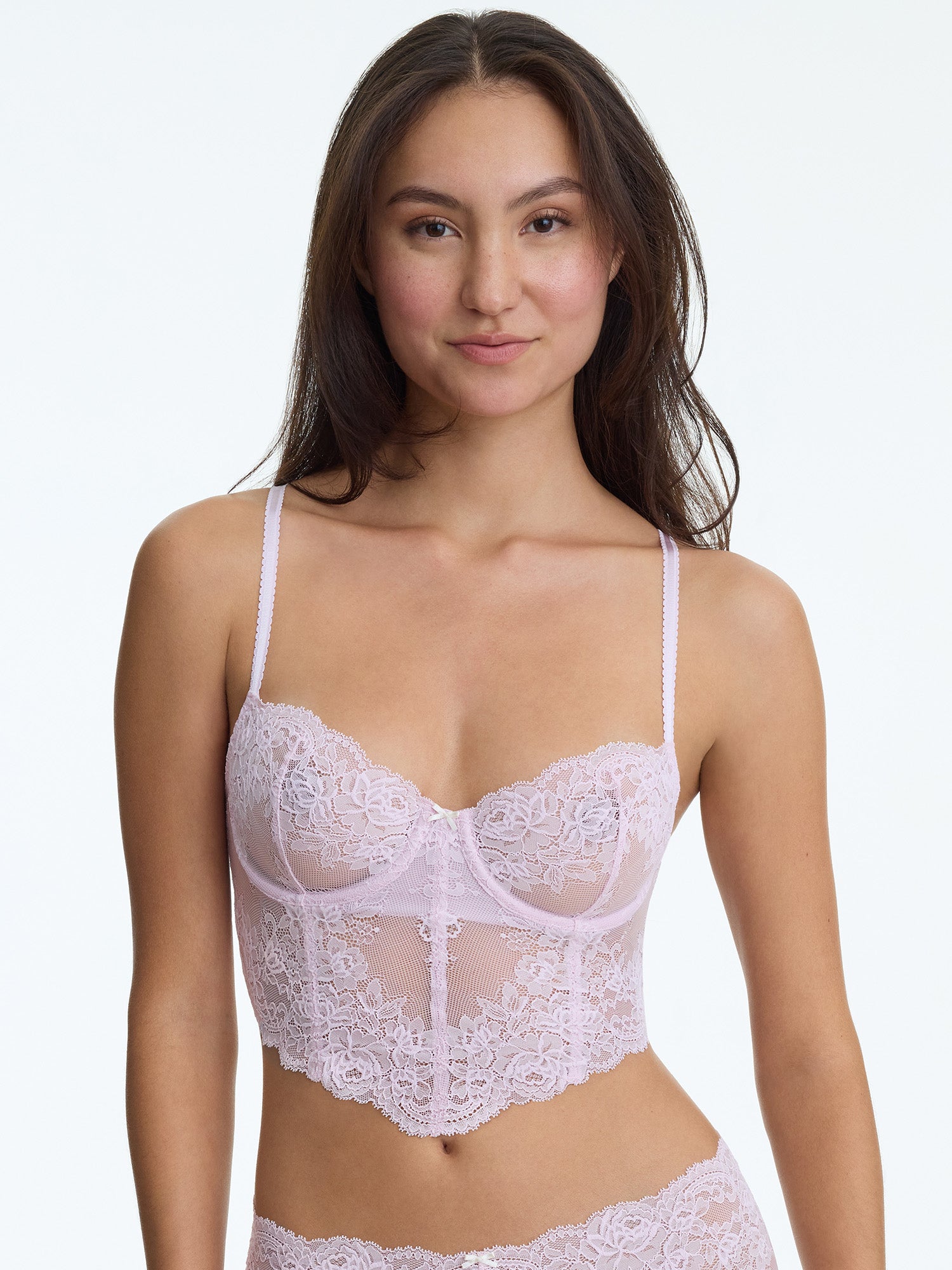 Designed to captivate with soft stretch lace and effortless charm. The Captivate Lace Corset Cami features unlined lace cups, flattering dart seams, and a stretch lace bodice that hugs in all the right places. With underwire support and delicate scalloped edges, this lace cami is made to show off, whether layered or worn solo. No boning, no fuss—just soft, sculpting lace and a sleek back for an effortlessly romantic feel.