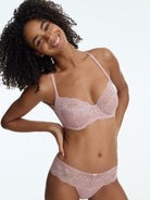 Designed to captivate from every angle. The Captivate Lace Bikini blends sheer floral lace with silky smooth fabric for a romantic bikini panty that feels as good as it looks. Sitting comfortably below the waist, this bikini features delicate lace, a dainty bow at the center, and moderate rear coverage. Soft, stretchy, and made to pair perfectly with any Captivate bra, it’s the lace bikini panty that turns everyday into something special.