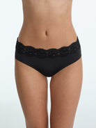 Perfectly smooth and effortlessly comfortable, the Divine Lace Trim Hipster is an everyday staple with just the right amount of coverage. Crafted from sleek matte jersey and finished with soft floral lace at the waistband, this mid-rise style offers a smooth, no-show fit under clothing. Soft, beautiful, and undeniably Divine.