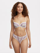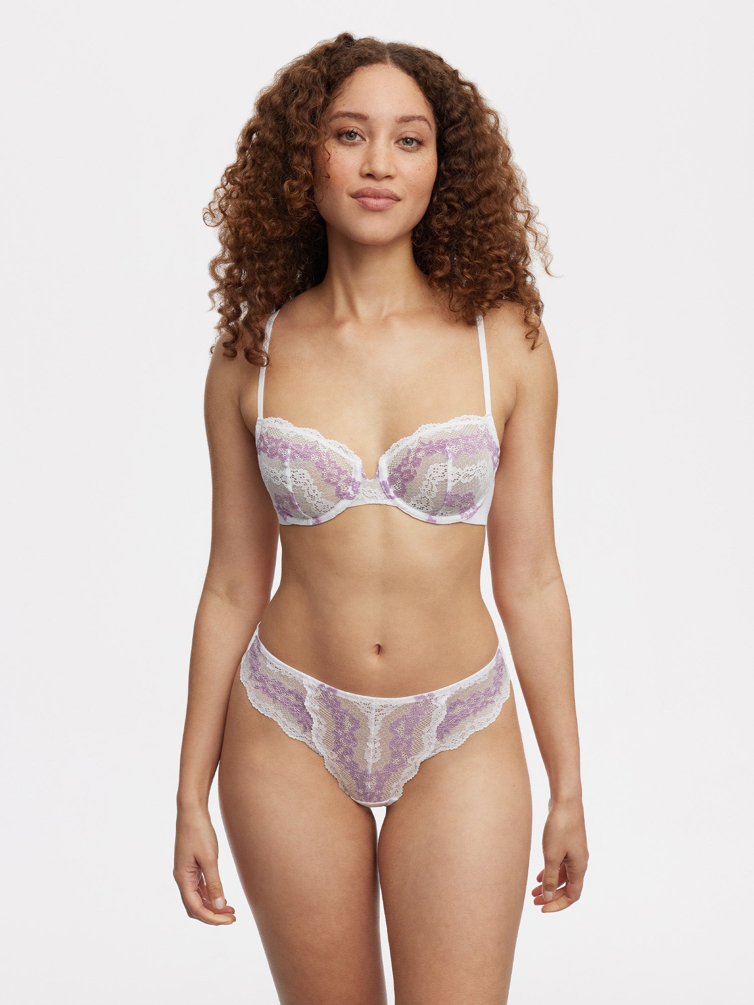 A new must-have thong to complement your lingerie wardrobe. Striped floral lace gracefully frames this easy everyday style.