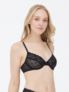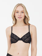 Feminine and sexy for every day. Unlined cups trimmed with floral lace allow for sexy coverage that works under tops and dresses. All over playful sheer, stretchy dot lace is light and comfy to wear all day. Wear with Dare Hipster or Dare Thong to complete the look.