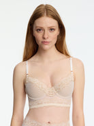 - Dotted lace is molded over stretch foam pads for coverage that allows you to easily transition this bra to your going out top
