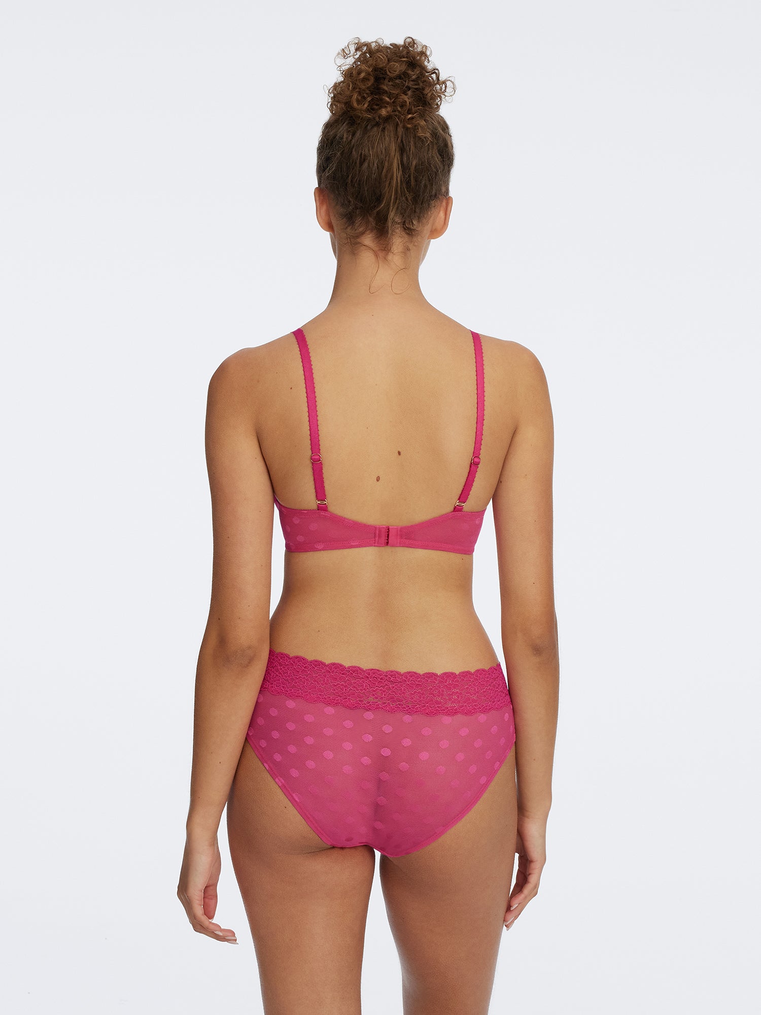 This hipster is both feminine and comfortable with flattering coverage. Dot lace and floral lace trim give the panty an everyday sexy feel.