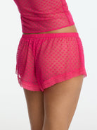 Heart eyes are guaranteed. These cheeky shorts are crafted from sheer stretch heart lace and finished with delicate heart-trimmed edges for a sweet-meets-sexy look. A satin bow and felt heart at the waistband add the perfect playful detail. Whether you're lounging or layering, the Heart Breaker Sheer Shorts bring charm to every moment. For the full effect, pair them with the matching Heart Breaker Sheer Cami or the Heart Breaker Underwire Bra.