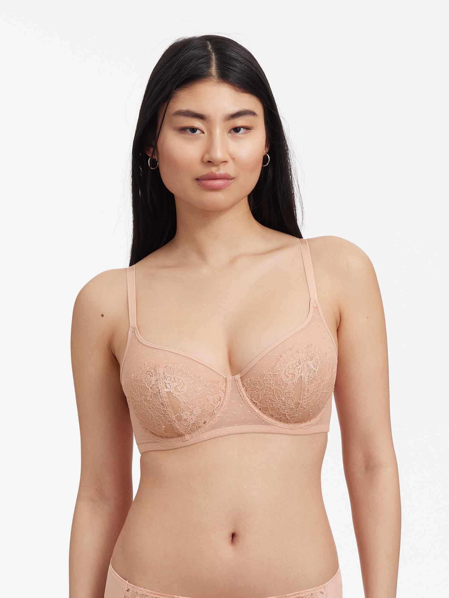 • Stretch dot lace on the top cup for an easy and comfortable fit