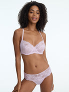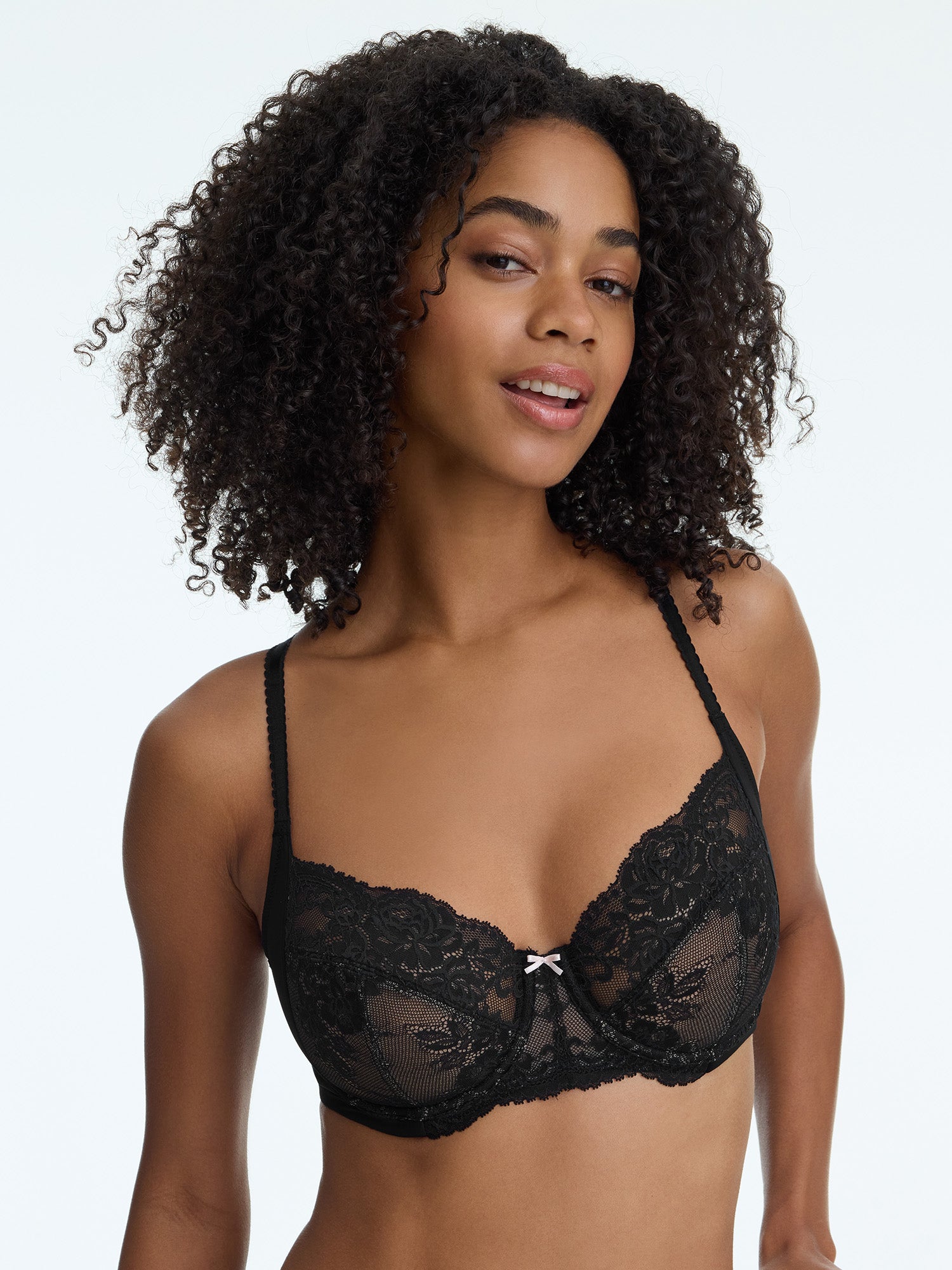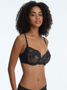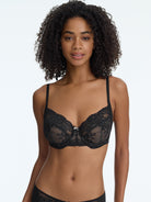- Full coverage lace bra with 4-part unlined underwire cups