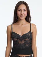 Designed to captivate with soft stretch lace and effortless charm. The Captivate Lace Cami features a floral lace bodice with a flattering V-neckline and high-low hem. Darted for shape and finished with silky smooth fabric at the back and bottom, it’s the lace cami you’ll want to show off, dress up, or lounge in. Style it with the matching Captivate lace short for a flirty, feminine set.