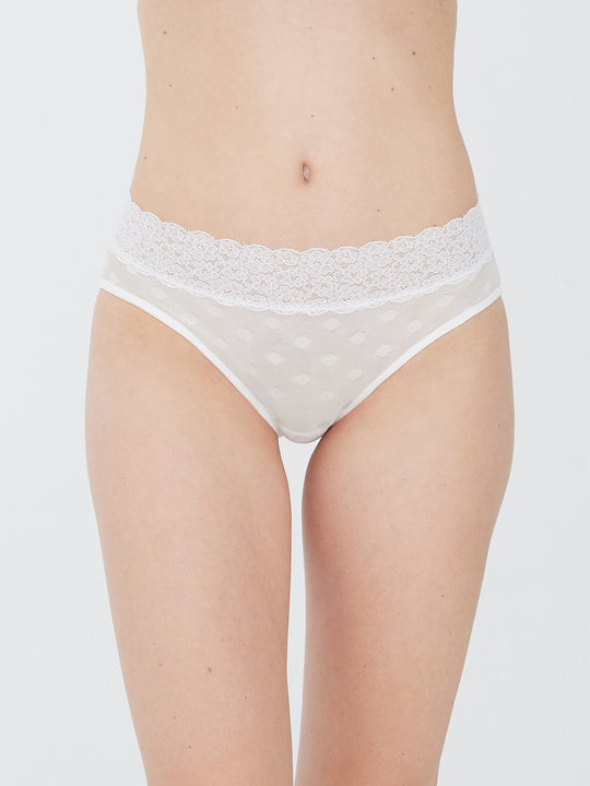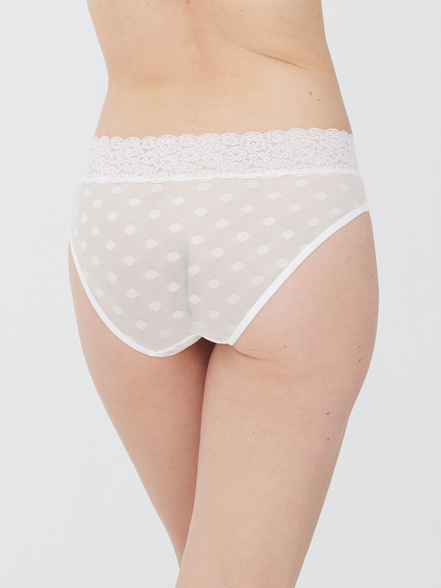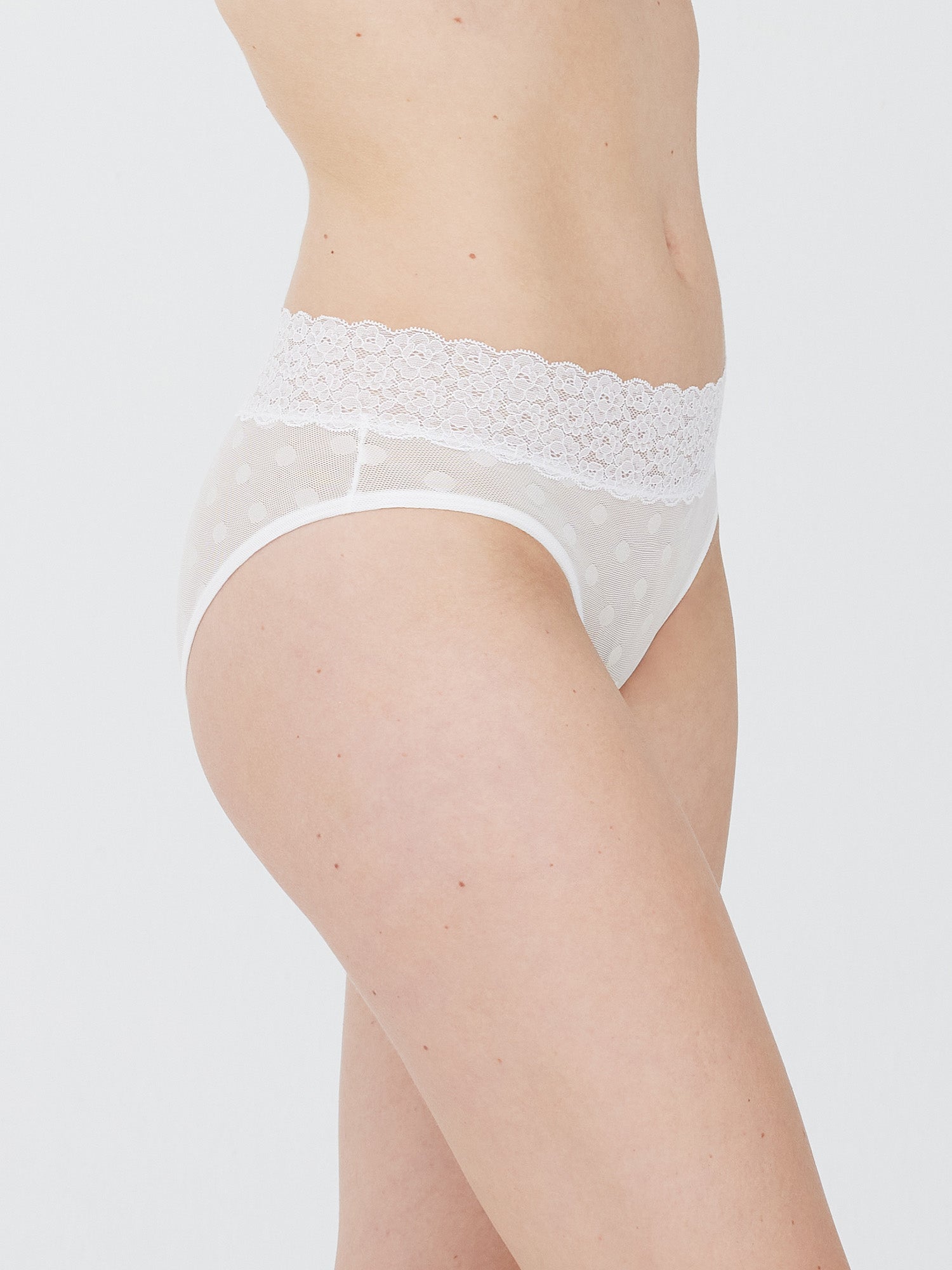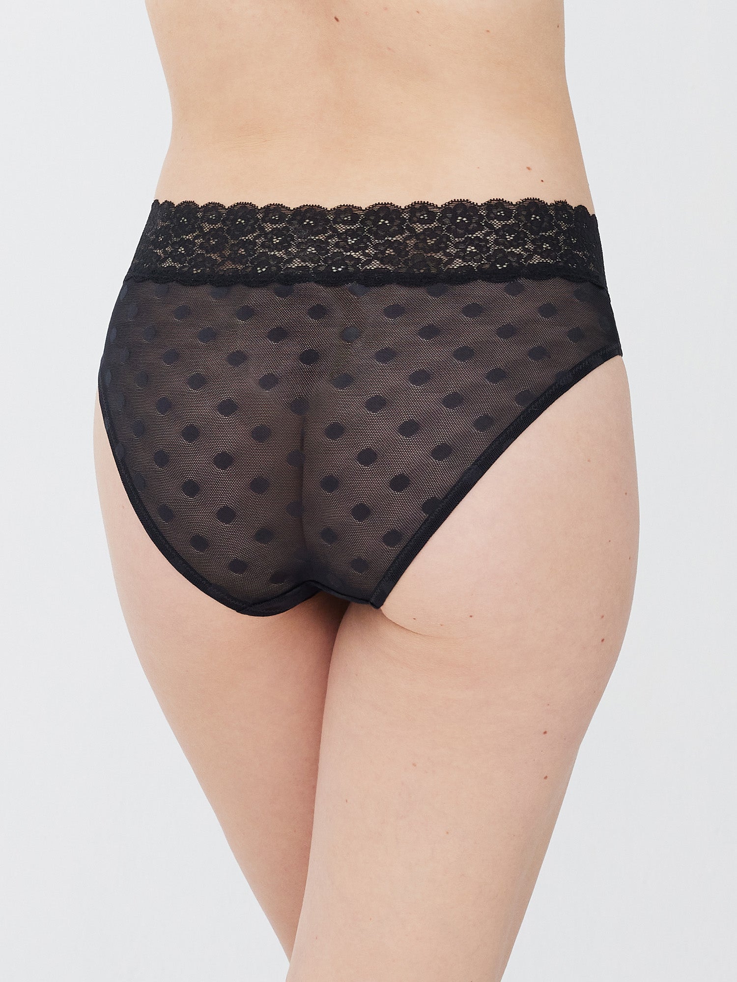 This hipster is both feminine and comfortable with flattering coverage. Dot lace and floral lace trim give the panty an everyday sexy feel.