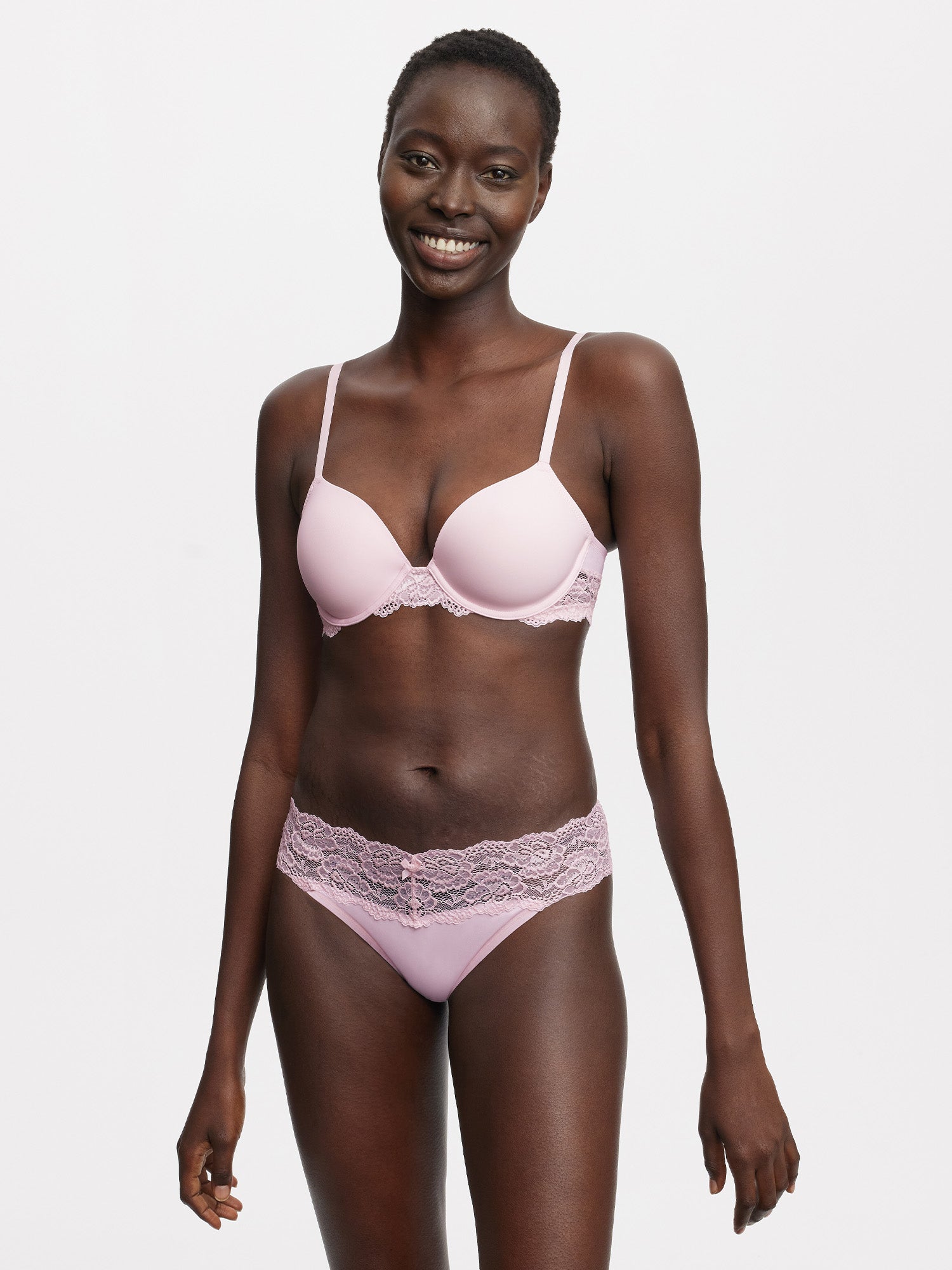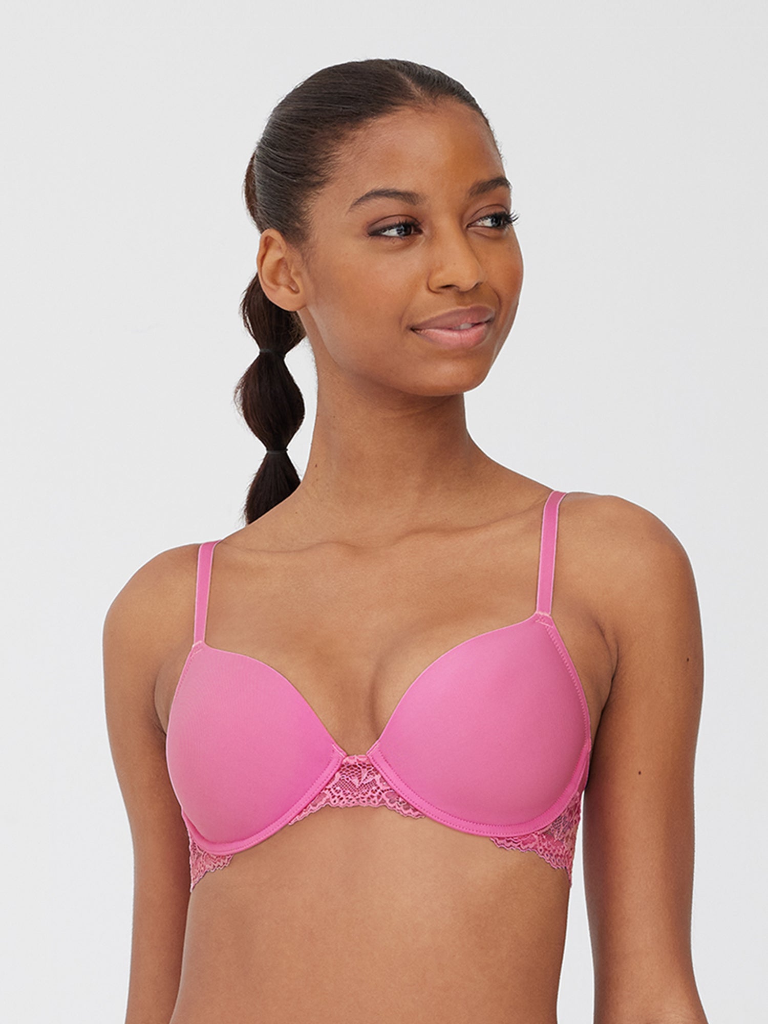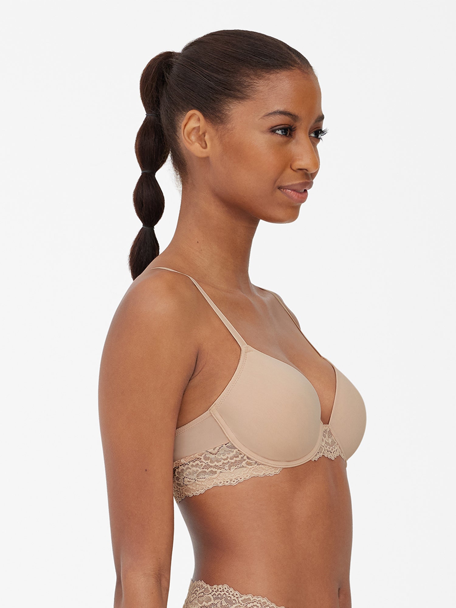 This T-Shirt bra has convertible straps that can be worn multiple ways. Goddess lace trims the bottom band adds a beautiful detail to your everyday bra. Super soft Nylon molded cups for added comfort and seamless look.