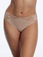 We are expanding our beloved Minx collection with a panty. Minx lace front is paired with a sleek fabric back for a bikini you can wear all day.