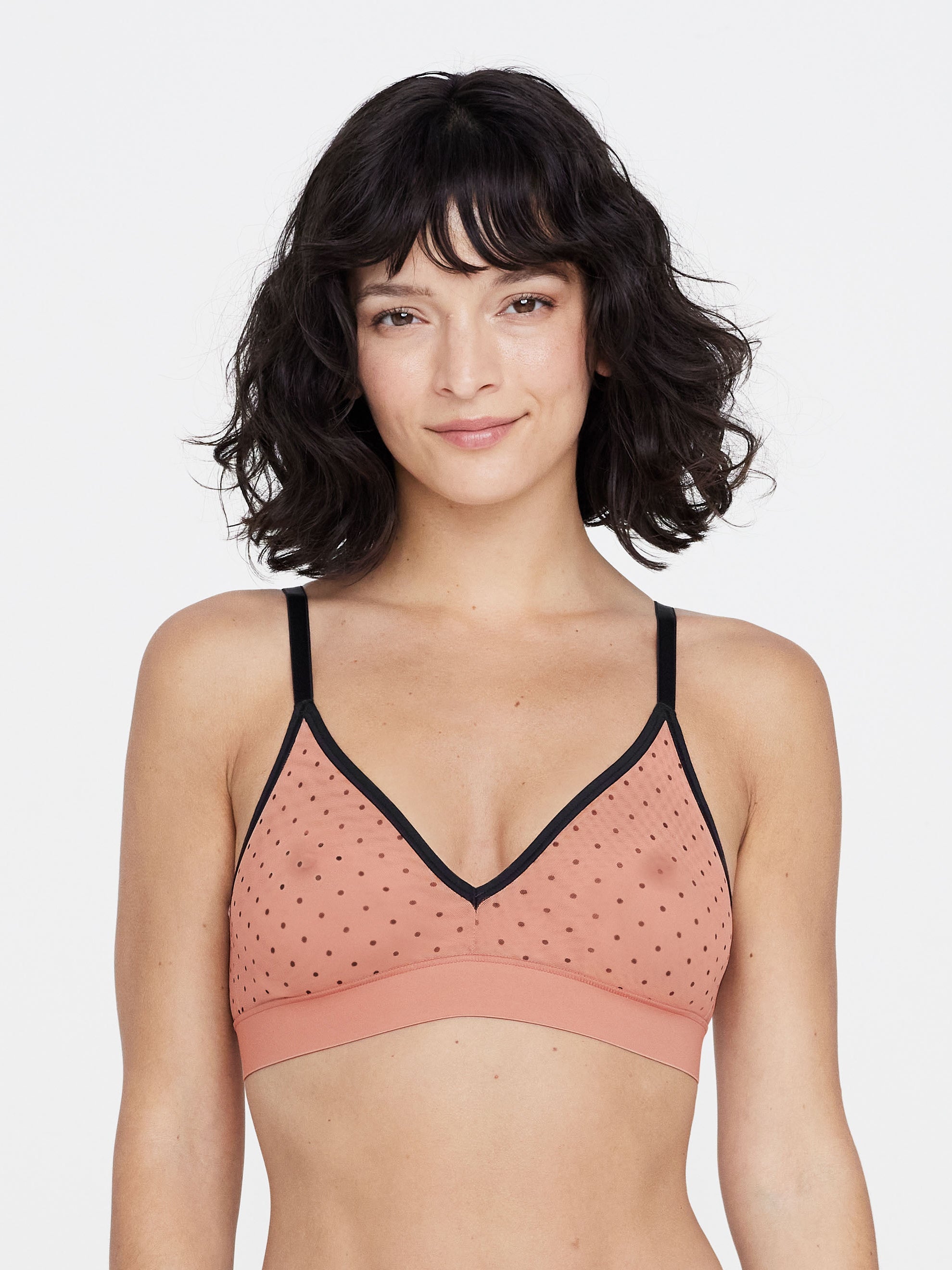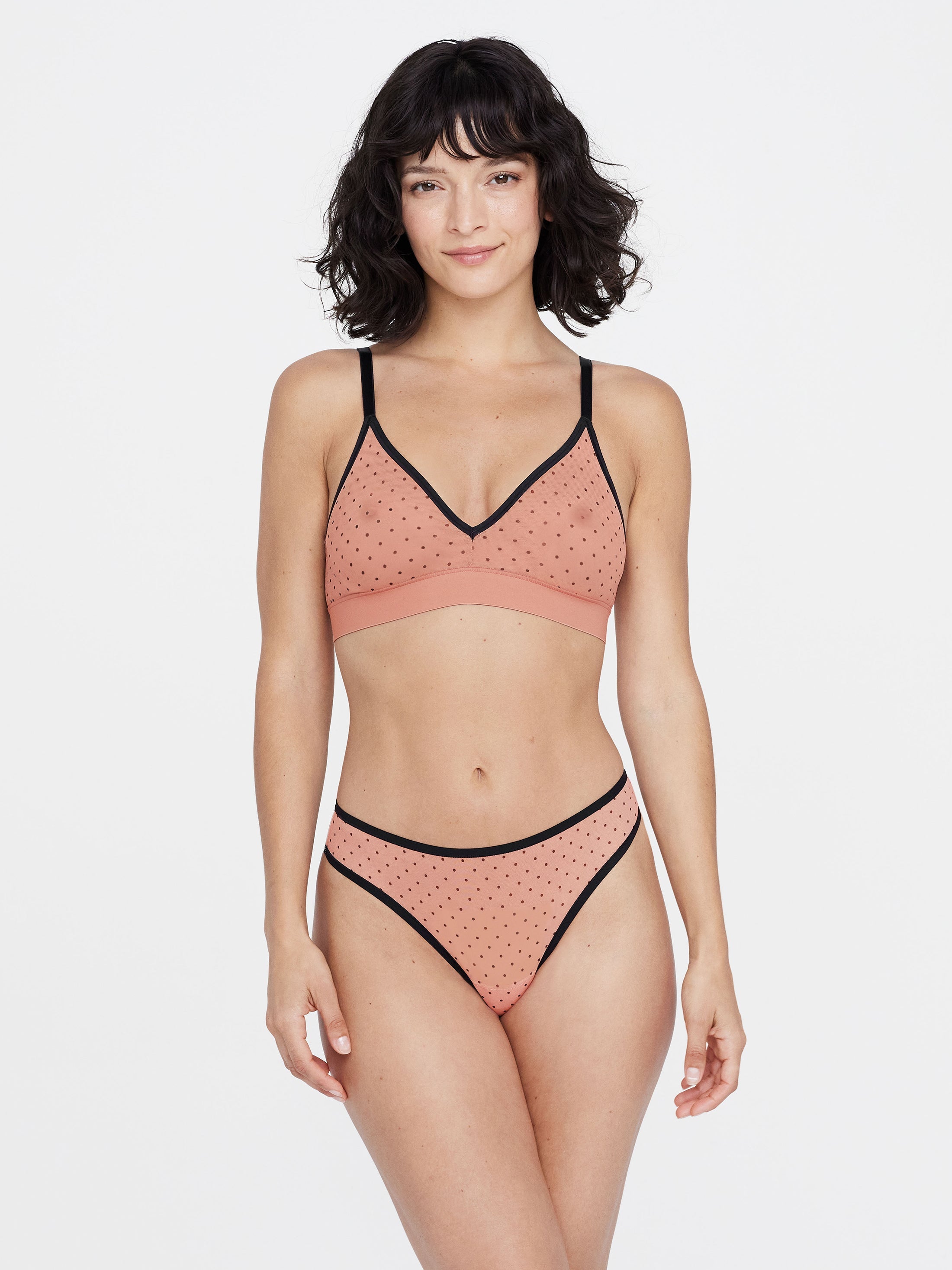 The tringle cups create a natural shape and plunge neckline that will disappear under clothes. The wide bottom band and stretch mesh backs allow for added support and comfort. Complete the look with matching Spellbound pants.